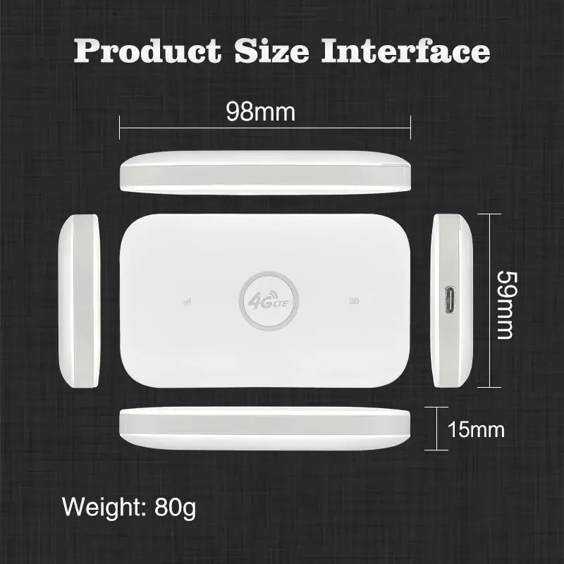 This 4G LTE Portable WiFi Hotspot MiFi Router enables high-speed internet access on the go. Supporting 4G LTE networks, it allows multiple devices to connect simultaneously, making it ideal for both personal and professional use.