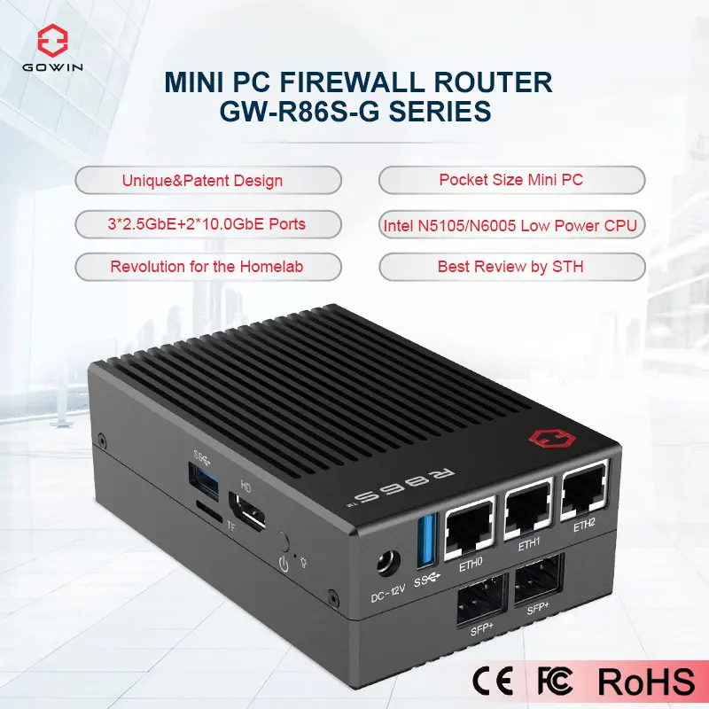 The Gowin R86S-G3 is a compact, high-performance mini PC designed for networking applications, including use as a firewall router. Equipped with an Intel Pentium N6005 processor and multiple high-speed network interfaces, it offers robust capabilities for both home and enterprise environments.