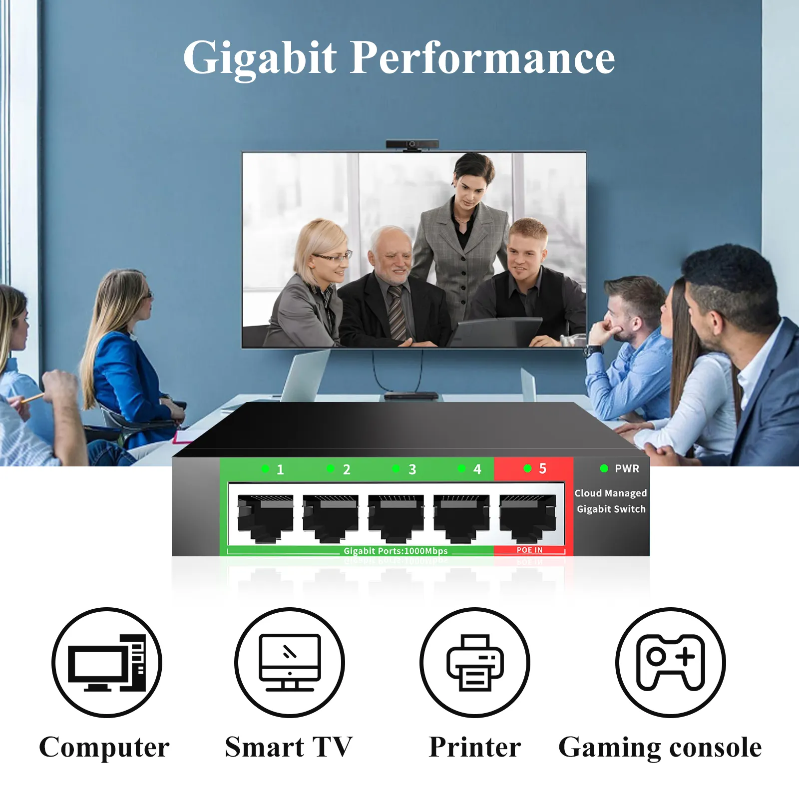 - Ports: 5 RJ45 ports